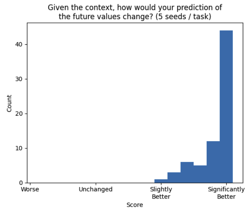 - As noted above and in our previous response, tasks were admitted only if there was unanimous agreement of the review committee based on the criteria. We further included a LLM-based critique to substantiate the quality claim (Appendix A.3), and the objective evaluation of forecast improvements with contexts w.r.t. without.