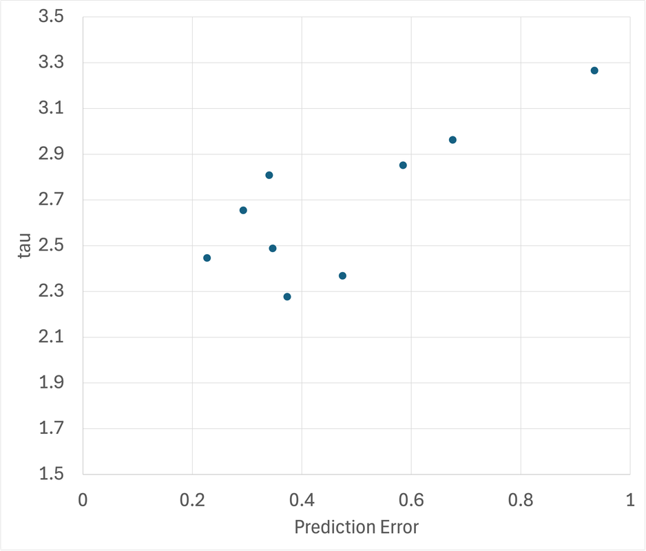 Figure 2 plots in the second row are not very readable: a correlation plot like the ones in Figure 3, between errors and \tau measure would allow to understand better the association level.