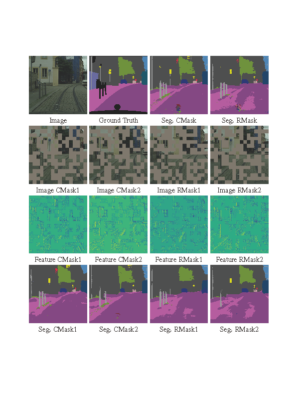 To comprehensively understand the effectiveness of the proposed Complementary Mask, I recommend the authors can conduct experiments on some more challenging segmentation datasets. For example, the medical image segmentation has strong domain shifts across domains. The fundus segmentation tasks such as OC and OD segmentation is a good choice.