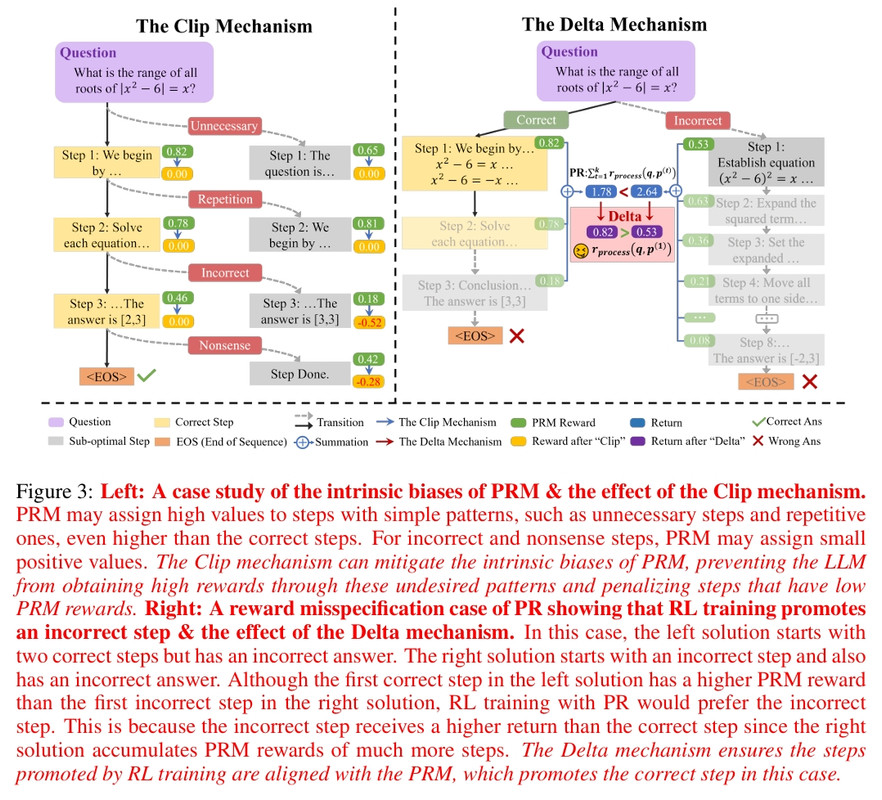 - We emphasize that, besides preventing training collapse, the mechanisms can effectively utilize the PRM to promote better reasoning skills in RL training.