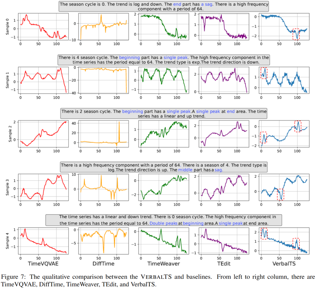 Thanks! We show some case studies of different methods in https://files.catbox.moe/1910op.png and will add this in revision. They demonstrate that our VerbalTS better aligns with the semantic information, capturing nuanced details more accurately.