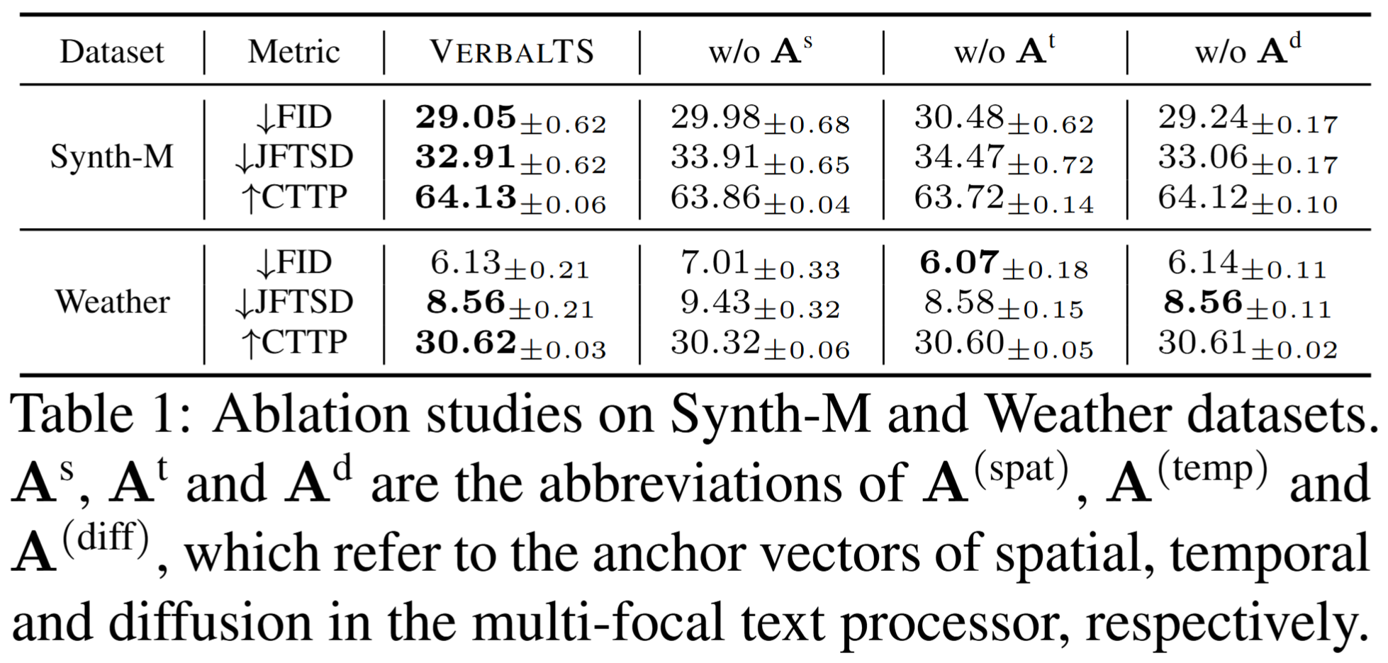 Suggestion 1: The ablation study could better use w/o , w/o and w/o .