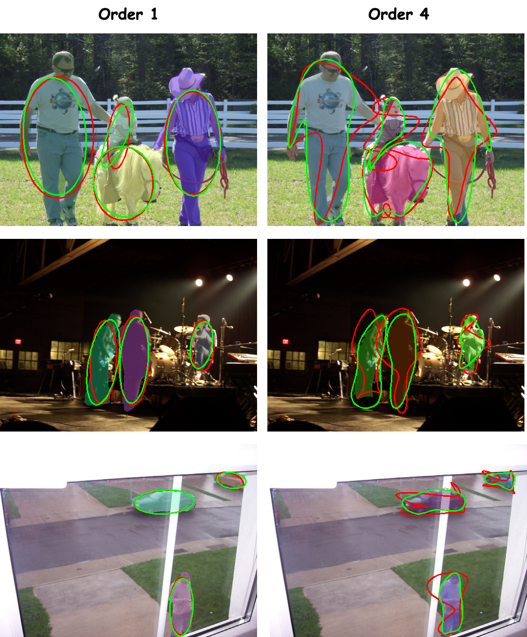 - Although both are ellipses, the 1st-order EFD behaves more like a PCA-based initialization, better capturing the object's principal orientation and shape distribution.