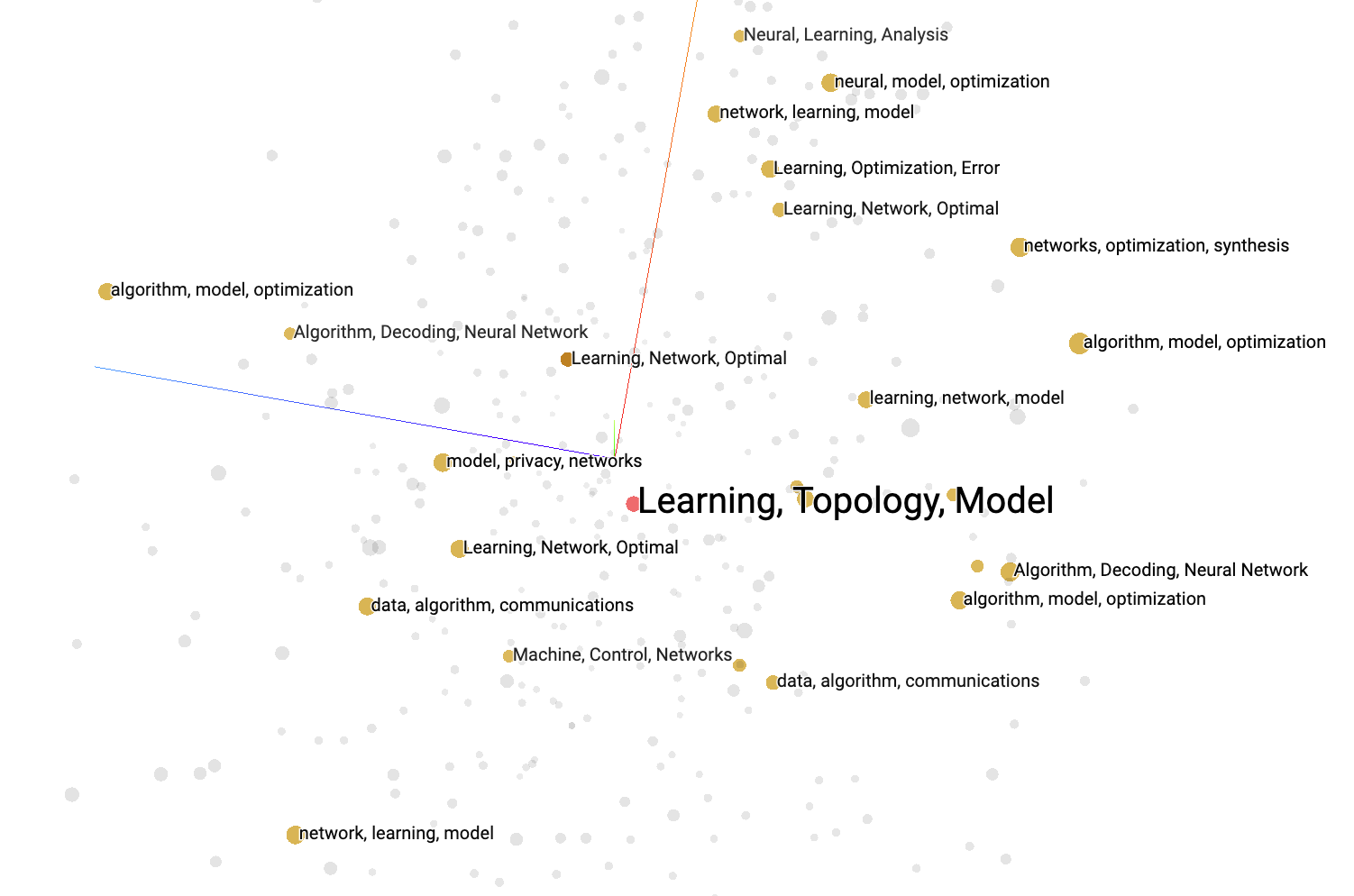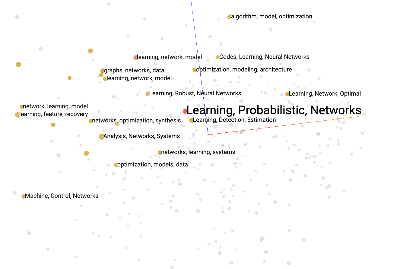 After applying PCA for dimensionality reduction to a 3D space, we observe that nodes with similar semantic labels (prototypes) are also close to each other in the semantic space.