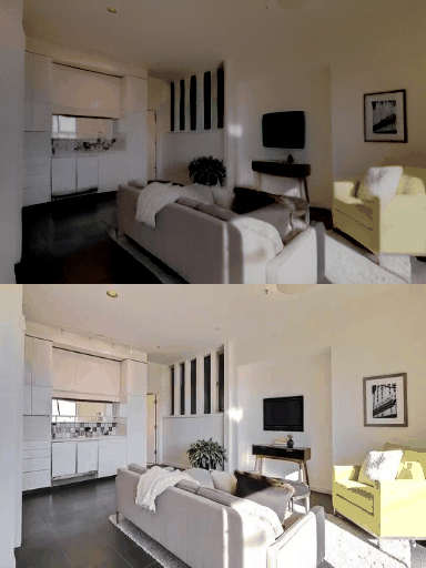 - Although RealEstate may seem to feature only static scenes, as mentioned in lines 92–96, our approach enables the imagination of unobserved parts using supplementary text prompts—an ability that ViewCrafter lacks. This highlights that our task differs slightly from traditional novel view synthesis. We can illustrate this point with the following example. Case 1 was generated by ViewCrafter. Case 2 and Case 3 were generated by EgoSim. In Case 2, we specified that the model should generate plants on the left side, while in Case 3, we specified the generation of a floor-to-ceiling window. As a comparison, in Case 1, ViewCrafter cannot create meaningful content on the left side. Note that the camera trajectories used on these two methods are not aligned.